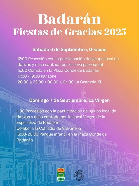 Para esos días el Ayuntamiento organiza, además de las típicas verbenas, otros actos como: degustaciones (champiñón, etc.), suelta de vaquillas, festivales de pelota, actuaciones musicales (danzas populares, jotas, etc.). Tradicionalmente ha sido nuestra peña Sopas de Ajo, la que se ha involucrado profundamente para que las fiestas de Badarán estén muy animadas, organizando concursos de muy diferentes tipos, concurso para tomar sopas de ajo, o también haciendo Zurracapote. Actualmente vuelve Sopas de Ajo con fuerzas jóvenes renovadas. Para Saber más de la Peña Sopas de Ajo: